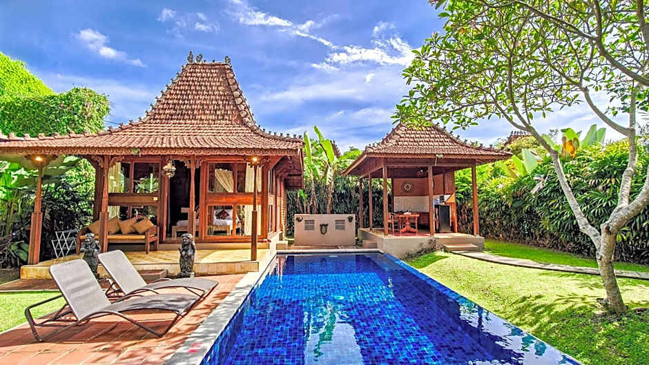 This two story villa( 1 bed & 2 single bed) is very suitable for a group of friends and family who would like to stay at longer period and enjoy the exploration of this magnificent city of art. The villa is completed with its own private pool, air conditioner, bathtub, kitchen set, semi open dining room and living room.